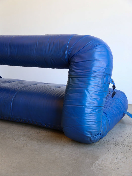 Alessandro Becchi “Anfibio” Sofa Bed in Blue Leather, Giovannetti Collezioni, 1970