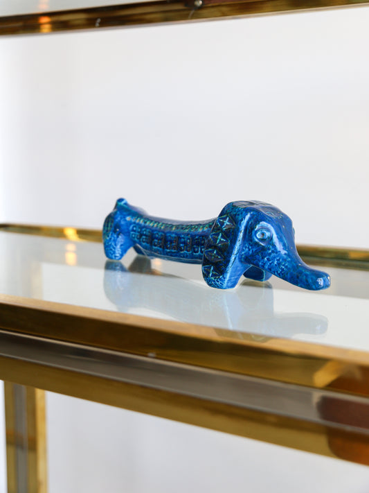Bitossi Blue Lion Glazed Ceramic by Alvino Bagni