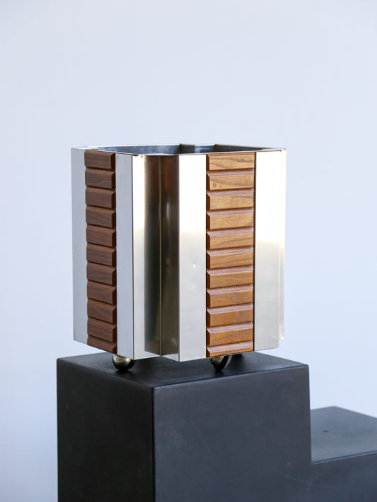 Mid Century Modern Italian Chrome & Wood Paper Bin on Wheels