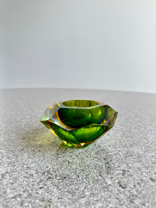 Mandruzzato Italian Murano Sommerso Green and Brown Thick Glass Ashtray, 1960s