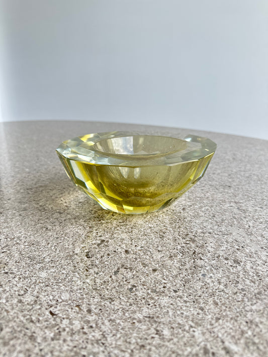Murano Round Light Yellow Colour thick Glass Ashtray, 1970