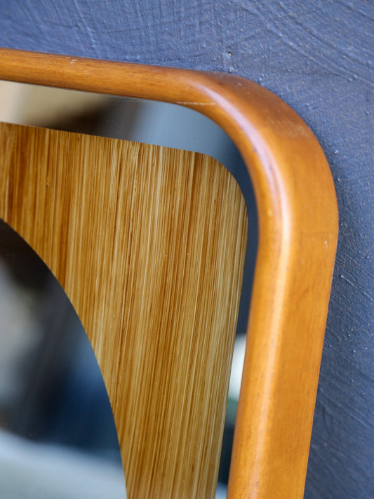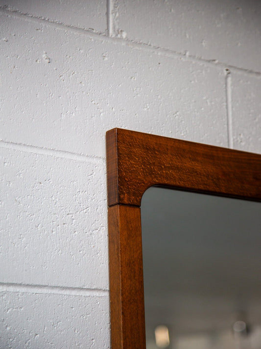 Italian Teak Mirror, 1960s – Mid-Century Rectangular Wall Mirror with Rounded Corners