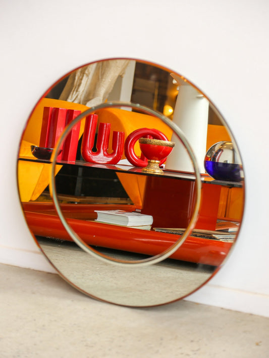 Italian Tinted Glass Wall Mirror with Circular Centre, 1970s
