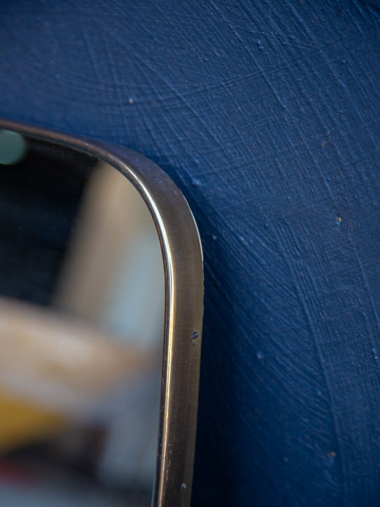 Italian Mid-Century Modern Wall Mirror with Brass Frame, 1970s
