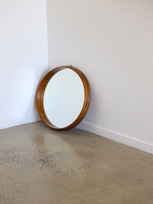 Glas & Trä Hovmantorp Round Wall Mirror in Teak, 1950s