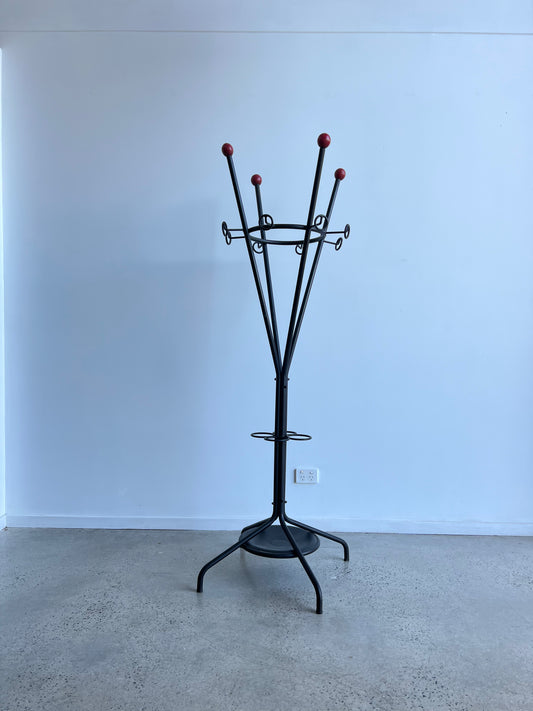 Italian Black Metal and Red Timber Coat Hanger, 1980s
