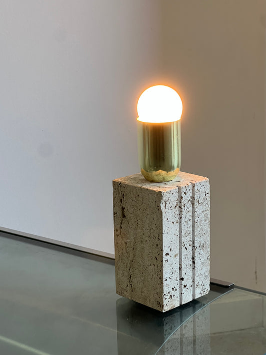 Fratelli Mannelli Rectangular Travertine and Brass Table Lamp, 1960s
