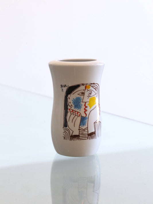 Vintage Ceramic Vase with Picasso-Inspired Artwork, 1970s
