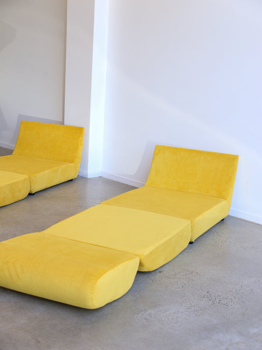 Zanotta Set of Two Yellow Velvet Lounge Chairs