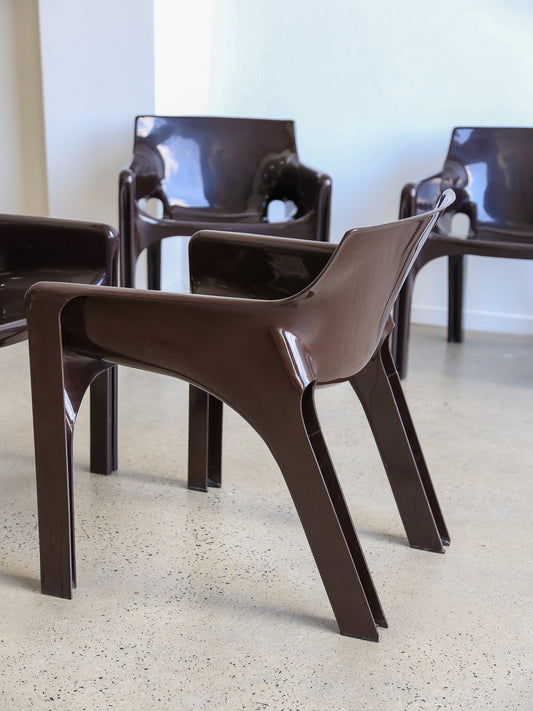 Gaudi Brown Chairs by Vico Magistretti for Artemide Set of Five 1970s