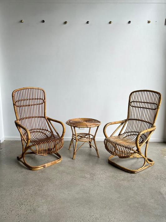 Italian Set of Two Chairs & Side Table in Bamboo by Tito Agnoli, 1960s