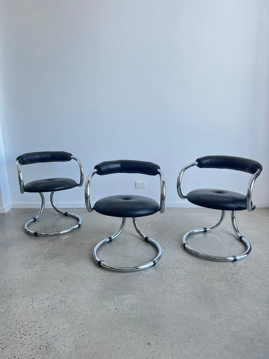 Giotto Stoppino for Tecnosalotto, Tubular Chrome Steel and Leather Chairs, 1970s