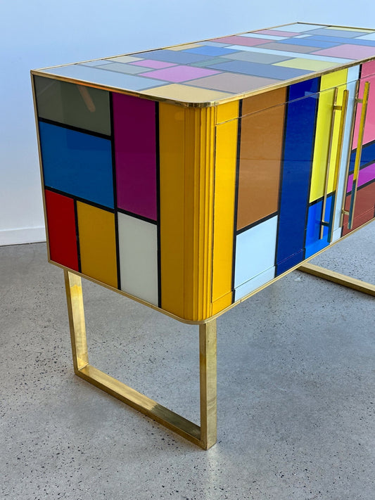 Murano Glass Sideboard With Brass And Wood Structure