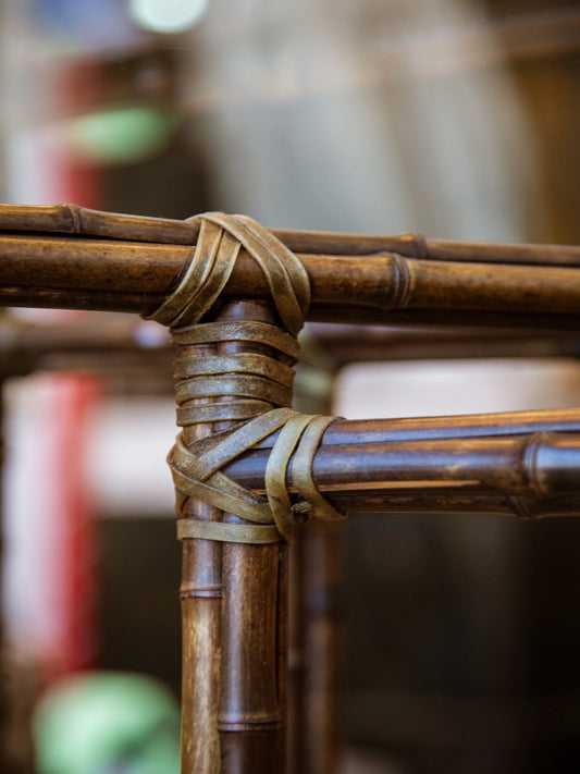Timeless Vintage Dining Table With Handcrafted Bamboo And Rattan Base