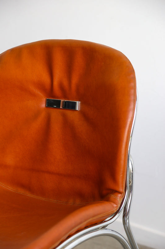 Giotto Stoppino for Tecnosalotto, Tubular Chrome Steel and Leather Chairs, 1970s