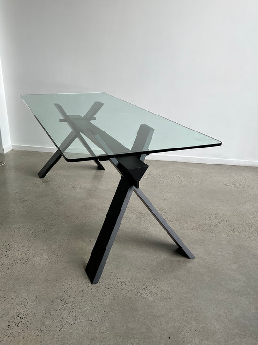 "La Piana" by Alfredo Simonit and Giorgio Del Piero for Bross, Glass and Lacquered Oak Dining Table, 1982