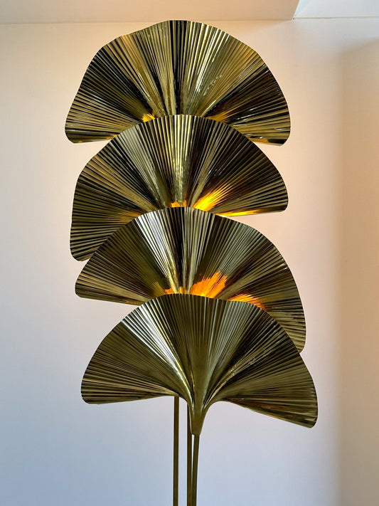 Italian Brass Ginkgo Leaf Floor Lamp, Contemporary