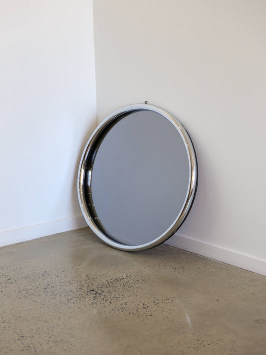 Mid Century Modern Chrome Frame Round Wall Mirror