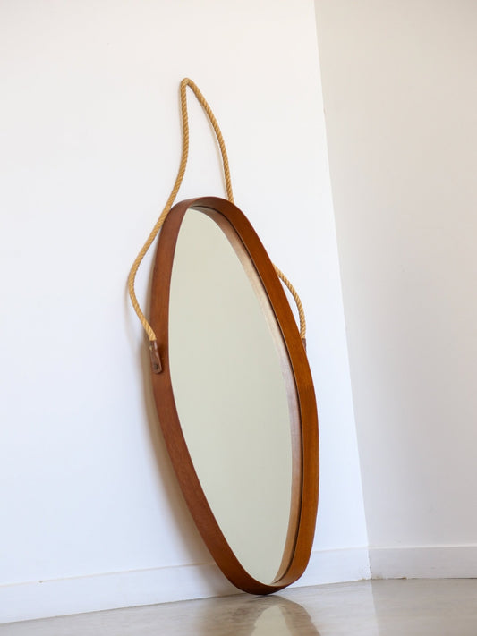 Campo & Graffi Mid Century Modern Oval Teak Wall Mirror, 1960