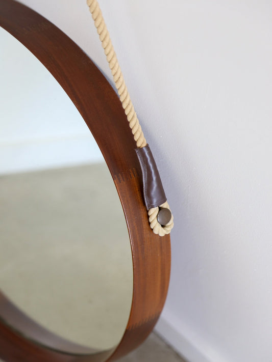 Glas & Trä Hovmantorp Round Wall Mirror in Teak, 1950s