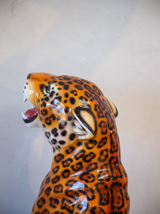 Set of Two Mid-century Italian Hand-painted Ceramic Leopard Statue