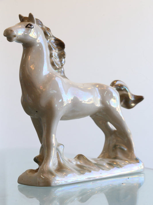 Italian White Perl Ceramic Horse, 1970s