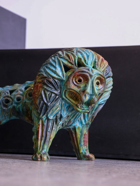 Bitossi Blue Lion Glazed Ceramic by Alvino Bagni
