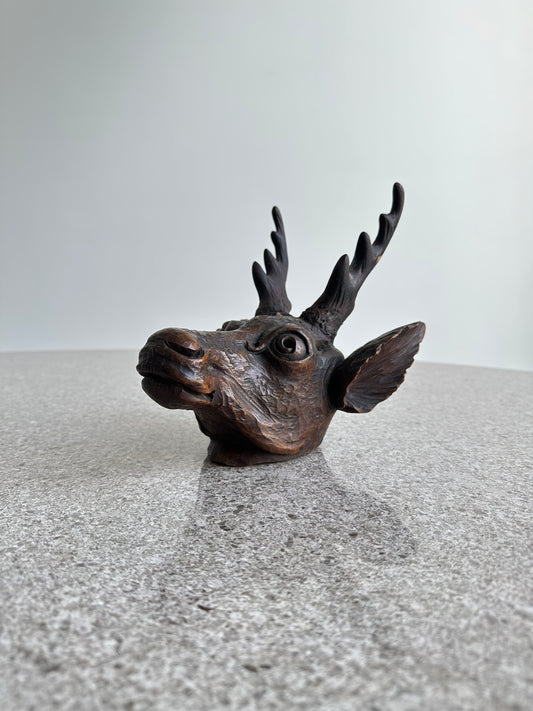 Italian Hand Curved Wood Deer Head, 1970
