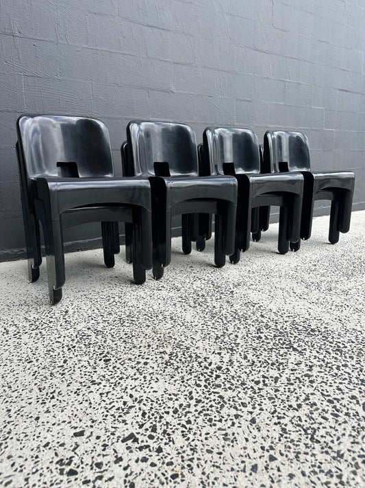 Joe Colombo for Kartell Universale Black Plastic Dining Chairs Set of Eight