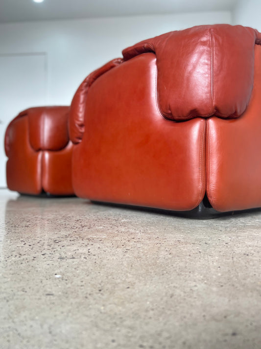 Mid-Century “Confidential” Sofa & Armchairs in Cordovan Leather by Alberto Rosselli for Saporiti Italia, 1970s
