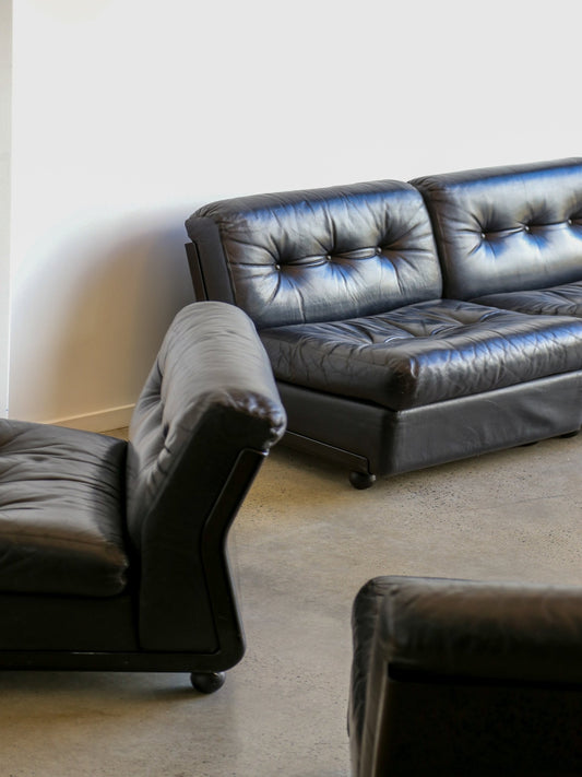 Amanta Modular Sofa in Black Leather By Mario Bellini for B&B Italia 1970