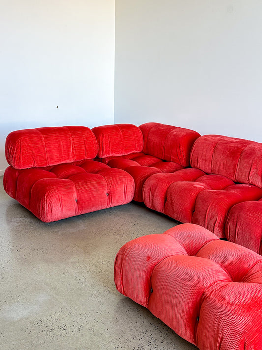 Italian Modular Sofa Model Lando Set of Two in Red Velvet & Abs Plastic