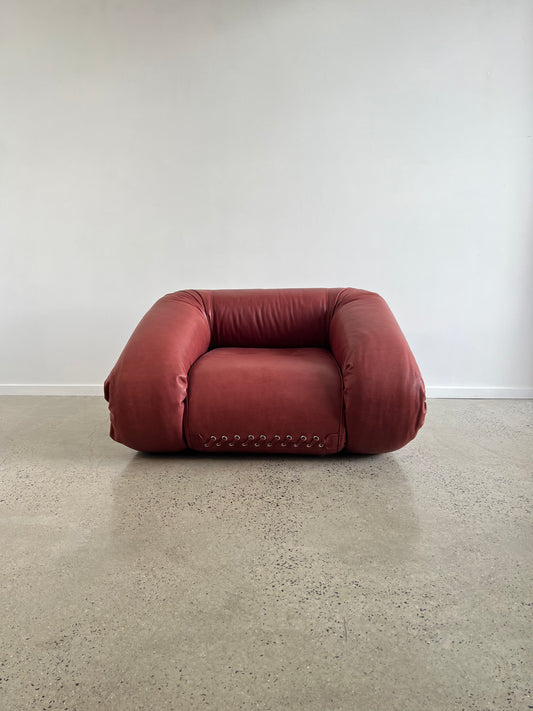 “Anfibio” by Alessandro Becchi for Givannetti, Armchair in Brown Leather and Sheepskin, 1970