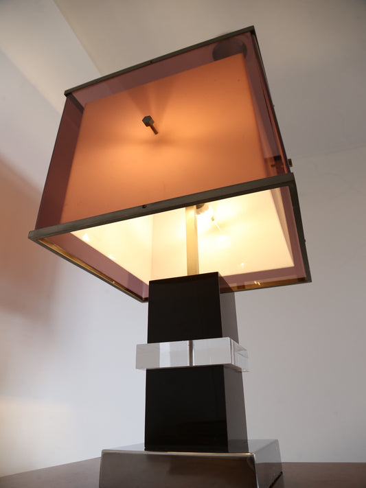 Italian Lucite and Brass Table Lamp by Romeo Rega, 1970s