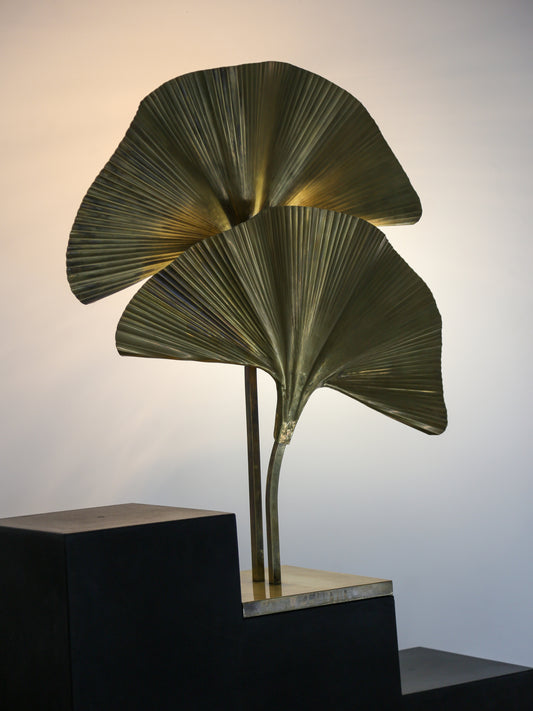 Italian Brass Ginkgo Leaf Table Lamp, Contemporary