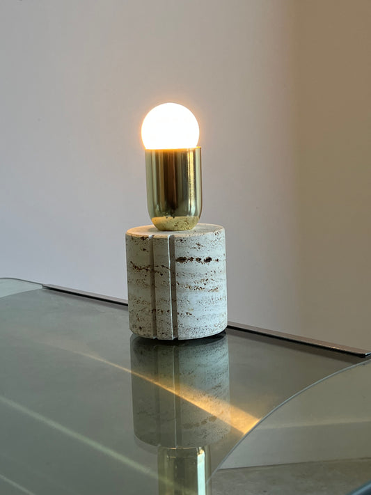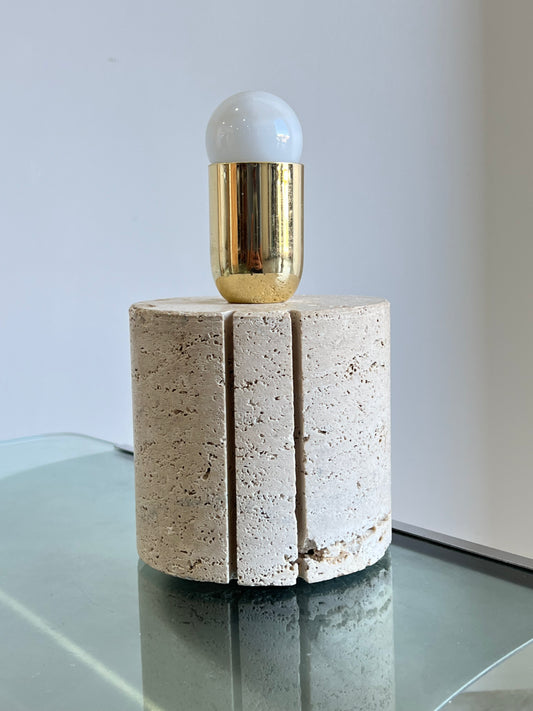 Fratelli Mannelli Round Travertine and Brass Table Lamp 1960s