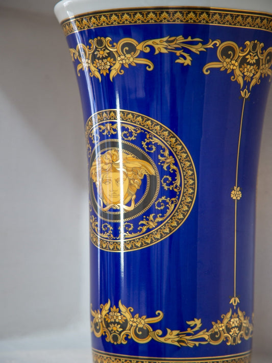 Versace Medusa porcelain vase in cobalt blue and gold Rosenthal for Versace