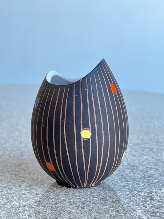 Italian Hand Painted Ceramic Vase with Linear Motif, 1960s
