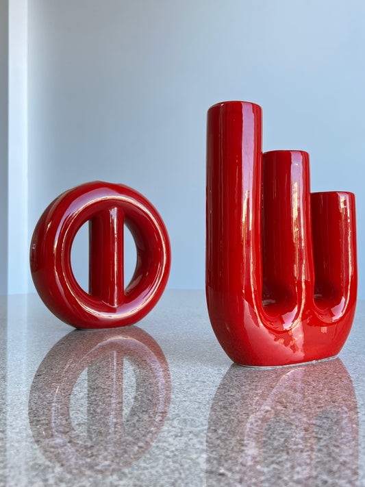 Pair of Gabianelli Sculptural Red Ceramic Vases, 1970s