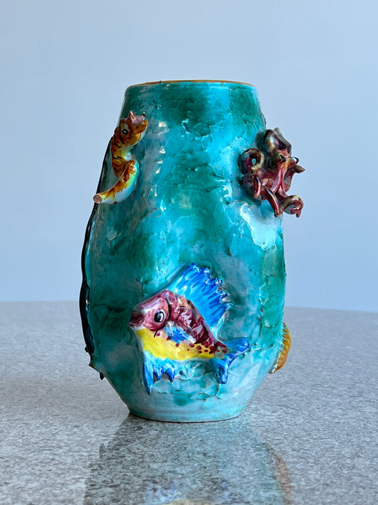 Bica Glazed Hand Painted Ceramic Vase, 1970s