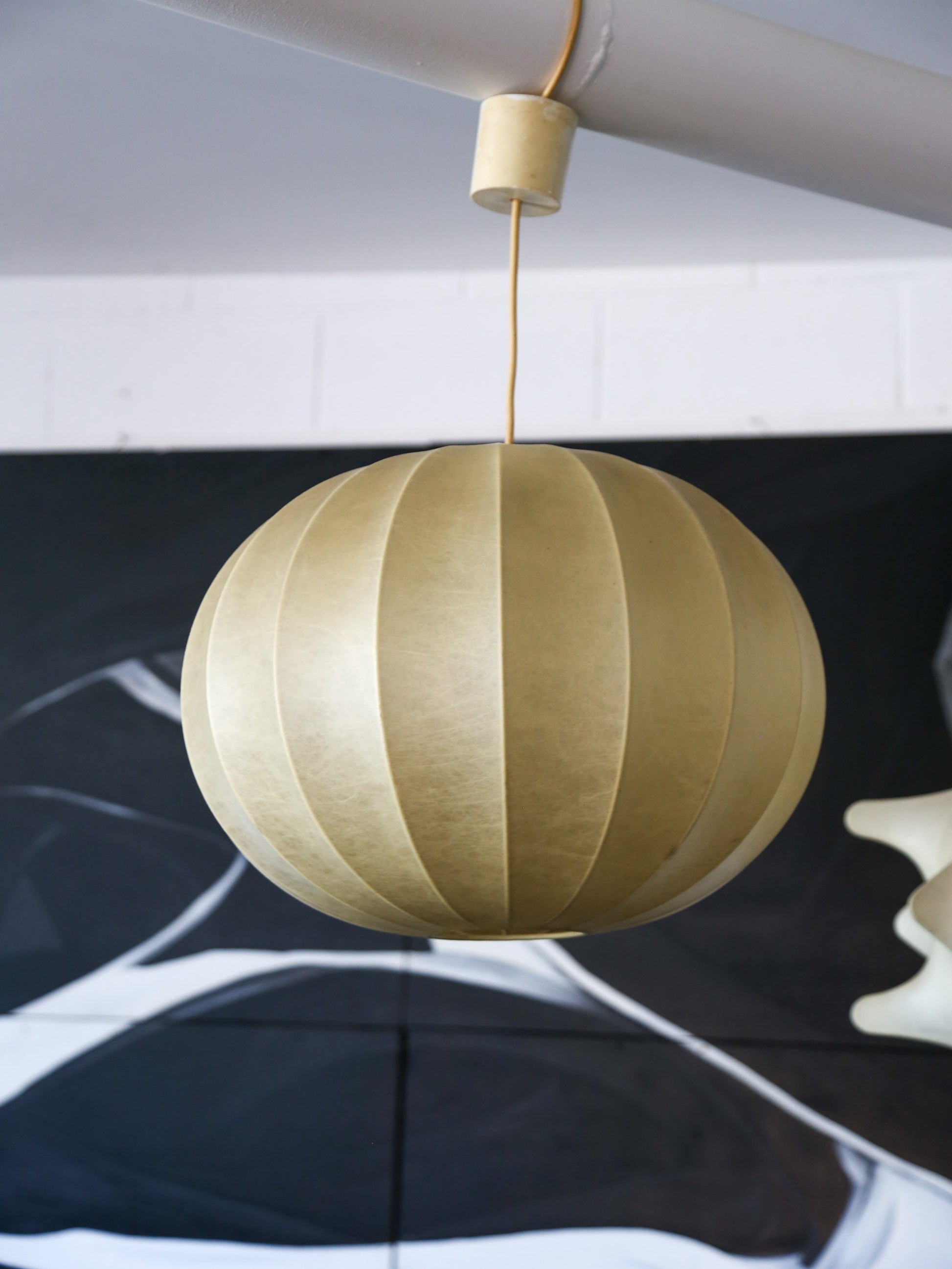 This pendant demonstrates the Castiglioni brothers’ experimental approach to lighting, combining industrial innovation with artistic expression. The Cocoon material, first developed during WWII, allows for a warm and diffused glow, while its sculptural presence makes it a standout in any interior.