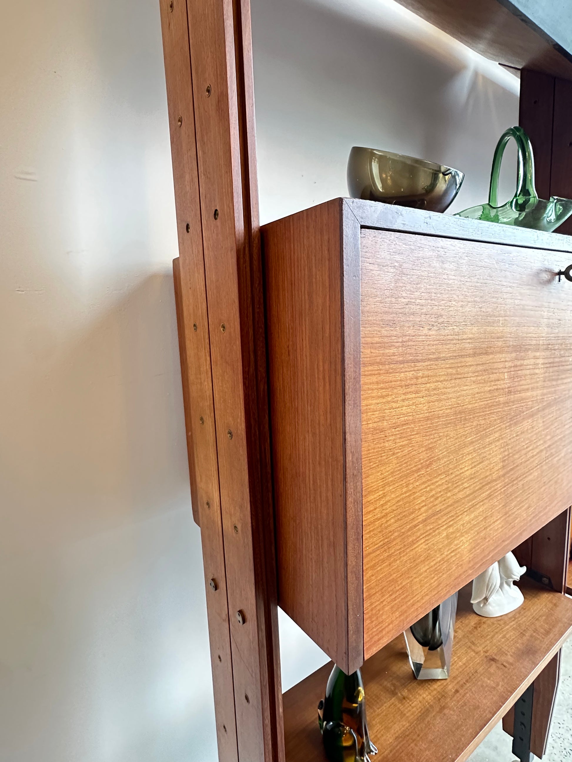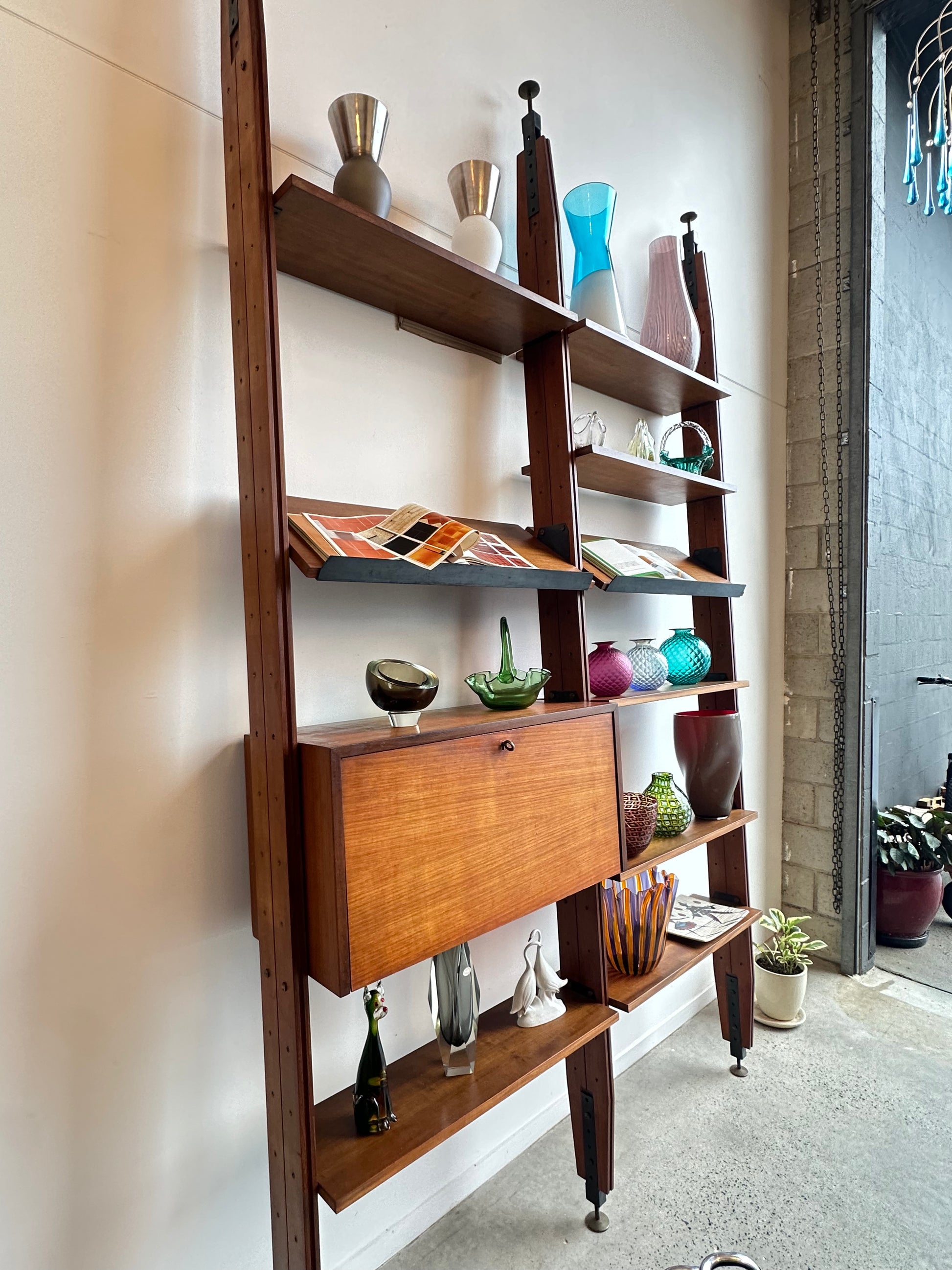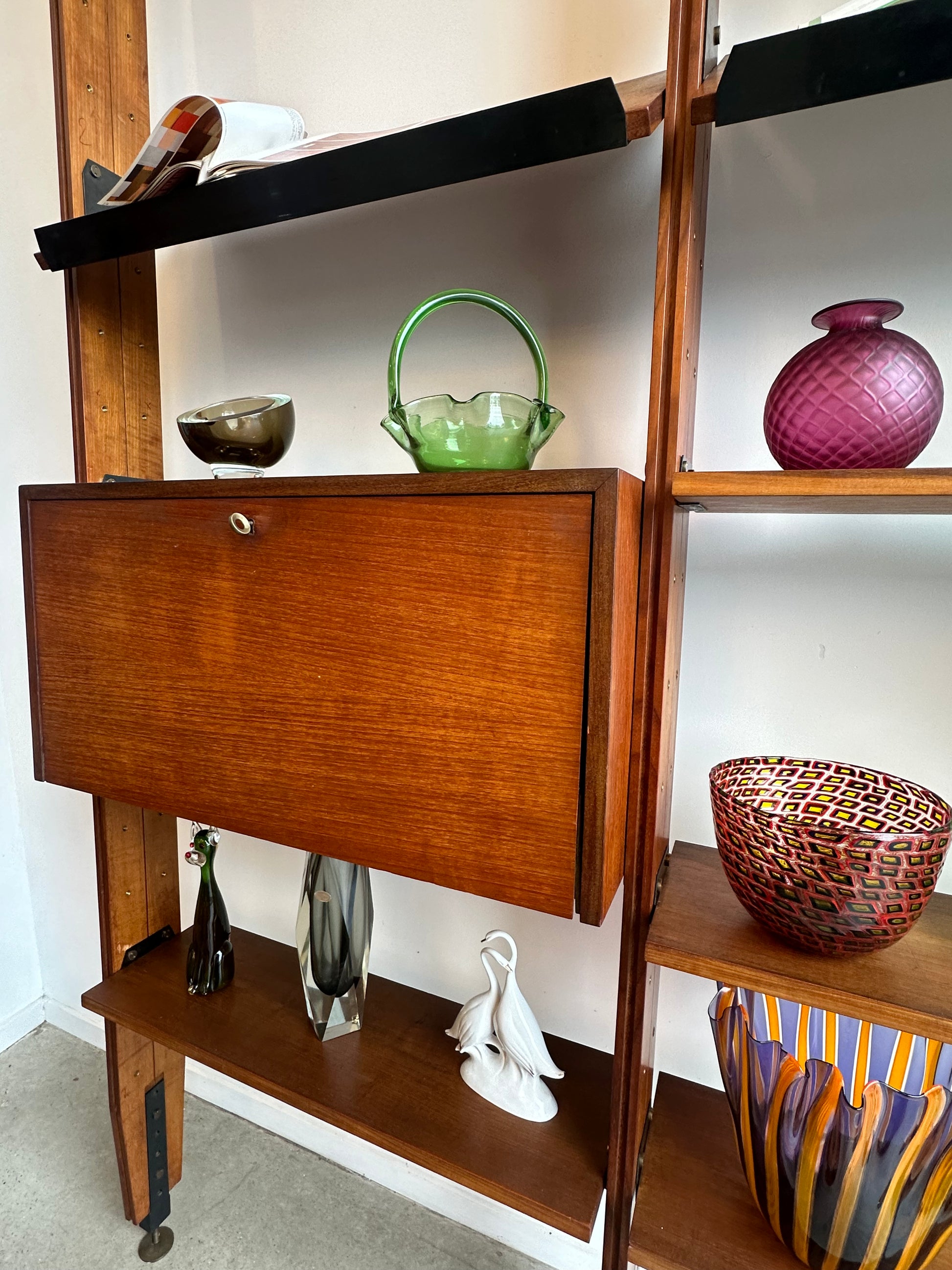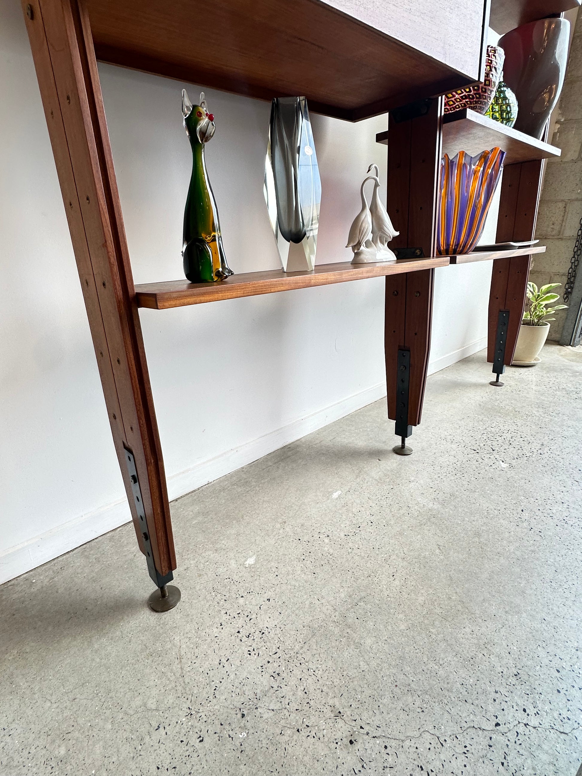 The clean vertical lines and customisable shelving reflect the era’s focus on proportion, material honesty, and modular flexibility. Brass accents highlight the craftsmanship while the walnut wood adds warmth and elegance. This balance of function and sculptural form is typical of Spadolini’s design philosophy.
