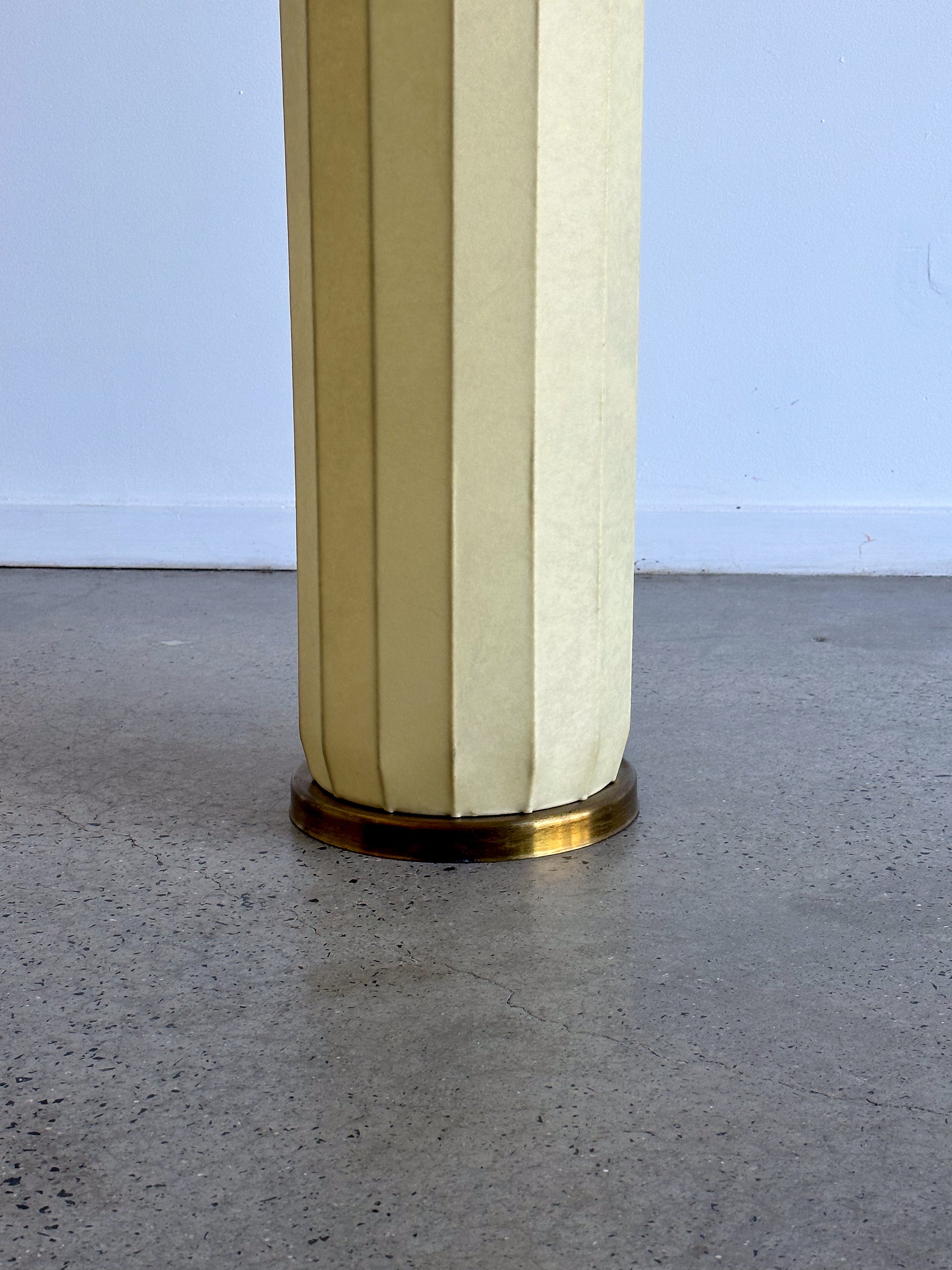 This extremely rare floor lamp features an internal steel structure with three light sockets and is covered with sprayed resin cover, which provides beautiful soft light effects. This piece is a stunning example of mid-century modern lighting design.The Cocoon floor lamp is a true statement piece, perfect for adding a touch of design and art to any interior space.