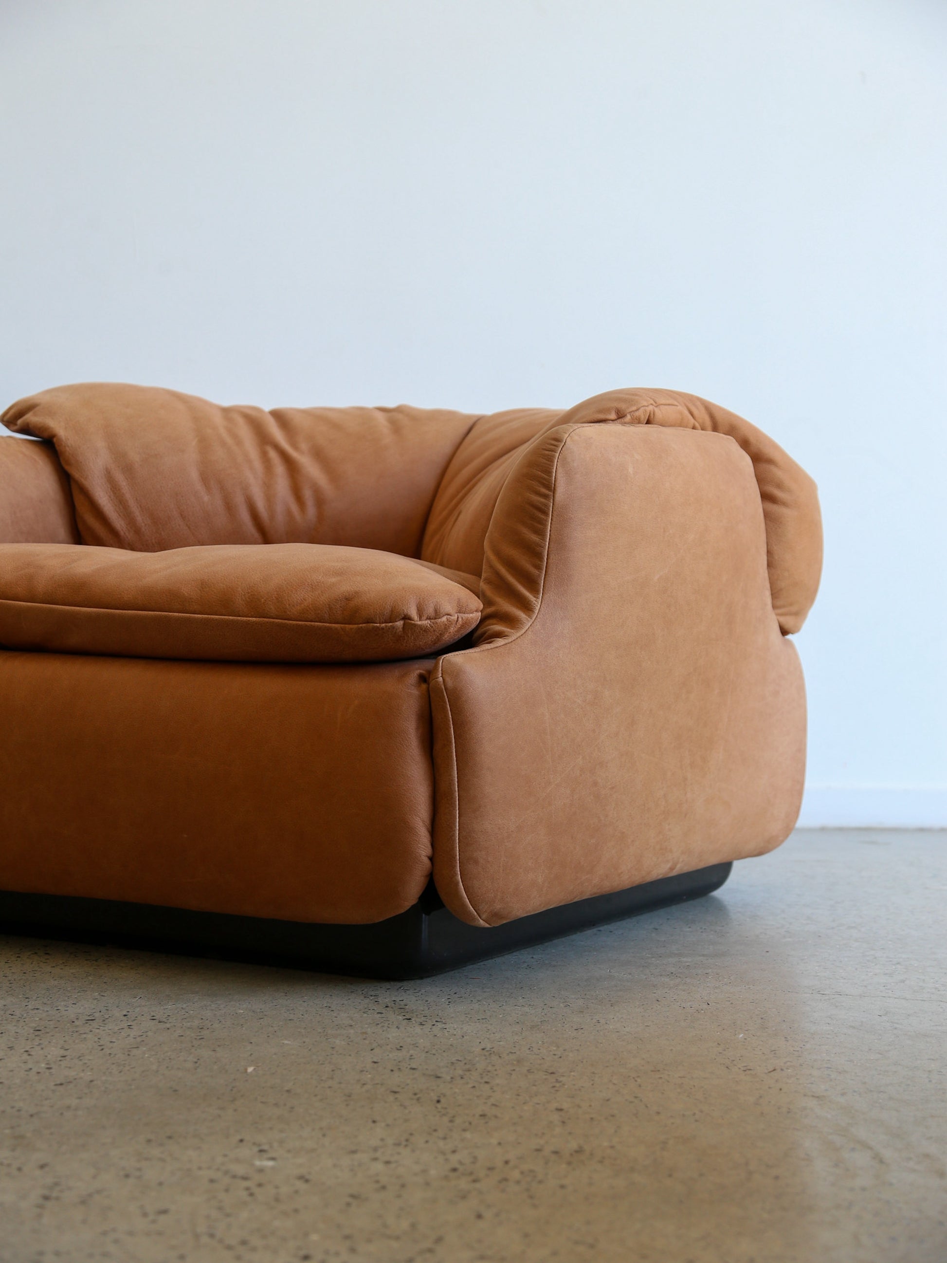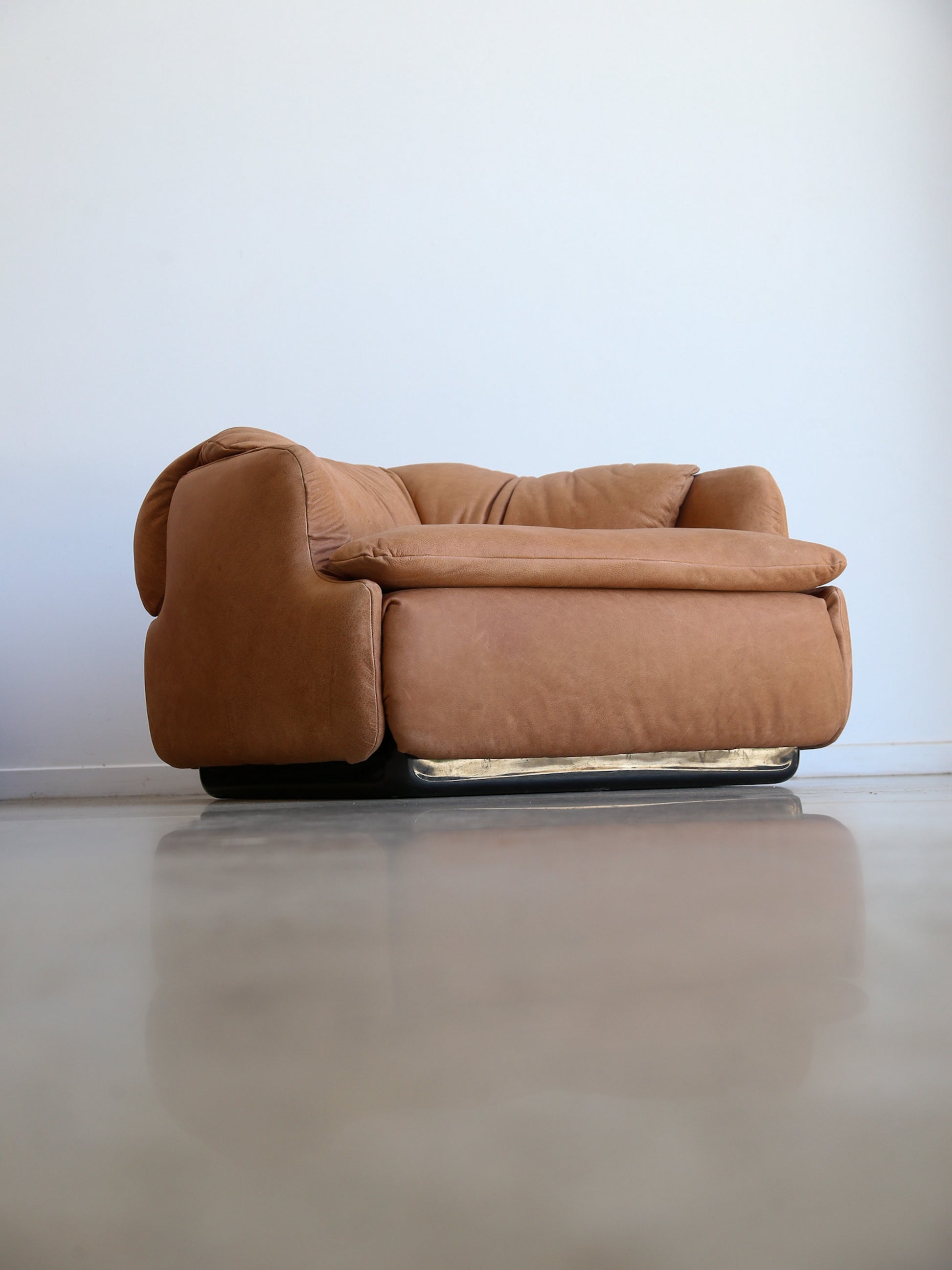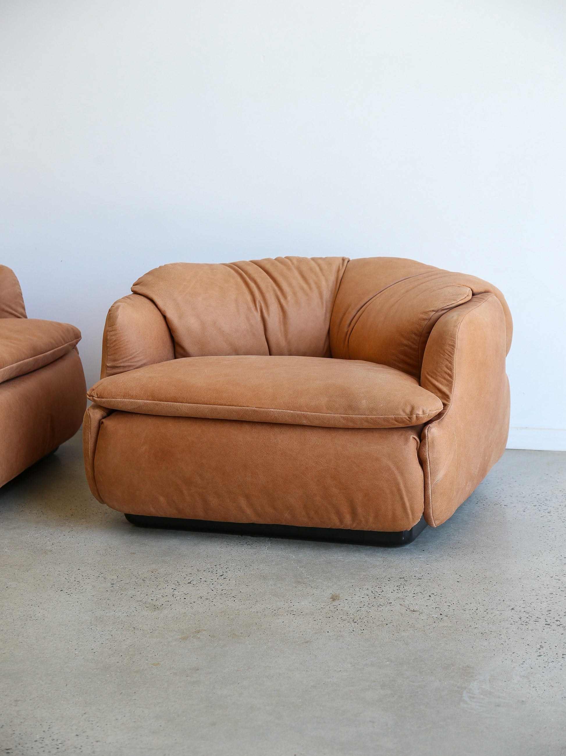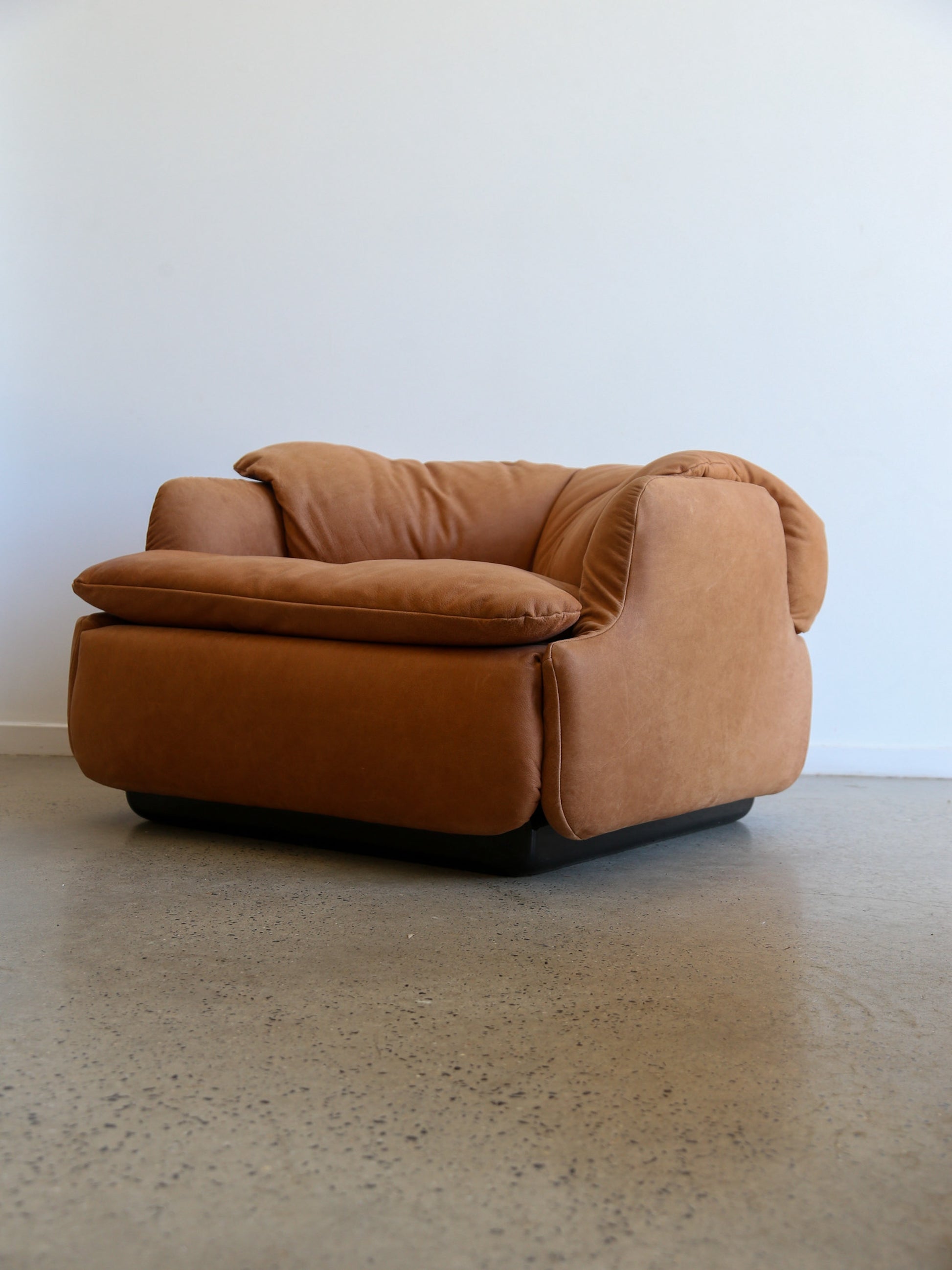 Designed in 1972 by Alberto Rosselli for Saporiti Italia, the Confidential armchairs are regarded as one of the first modular seating systems ever created for private interiors. With their enveloping curves, soft proportions, and rich leather upholstery, they embody the elegance and innovation of 1970s Italian furniture design.