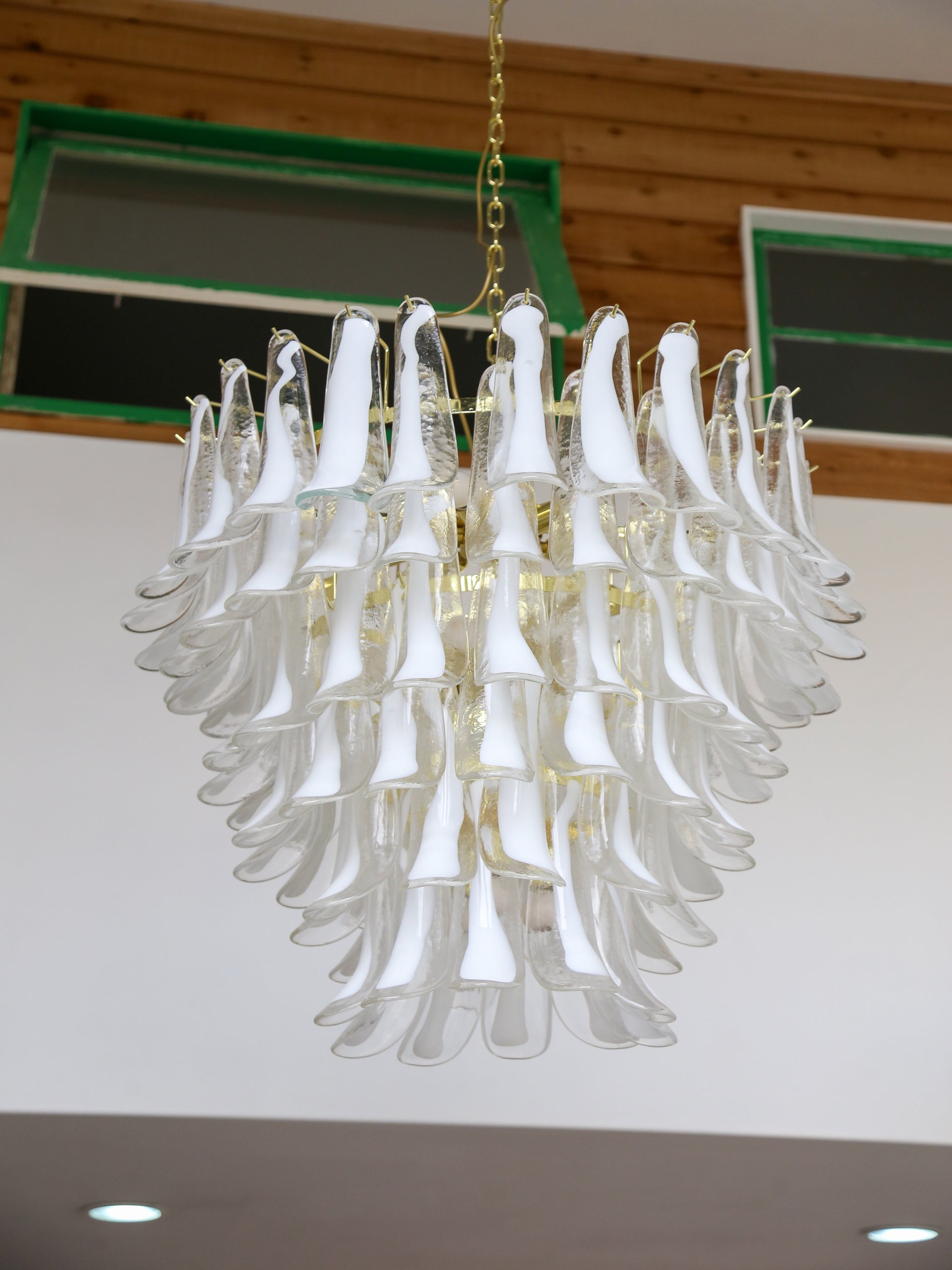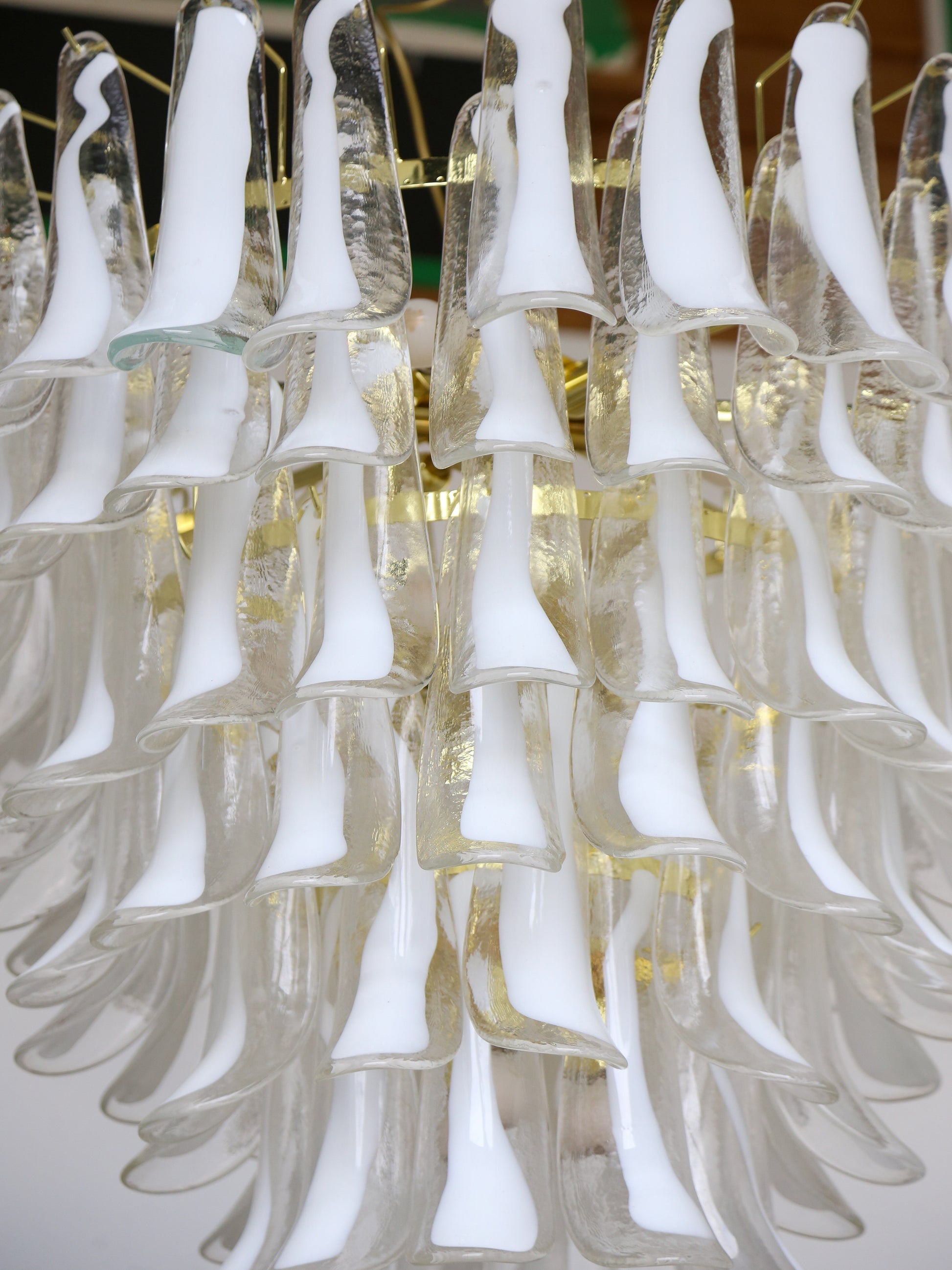 Murano White Glass Chandelier with Brass Frame, Contemporary