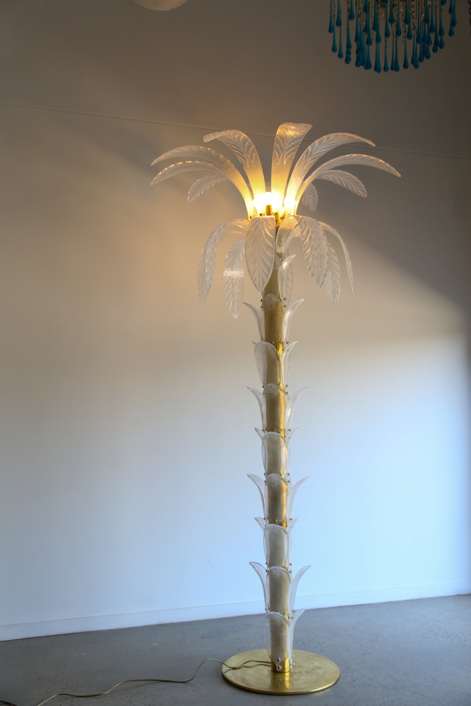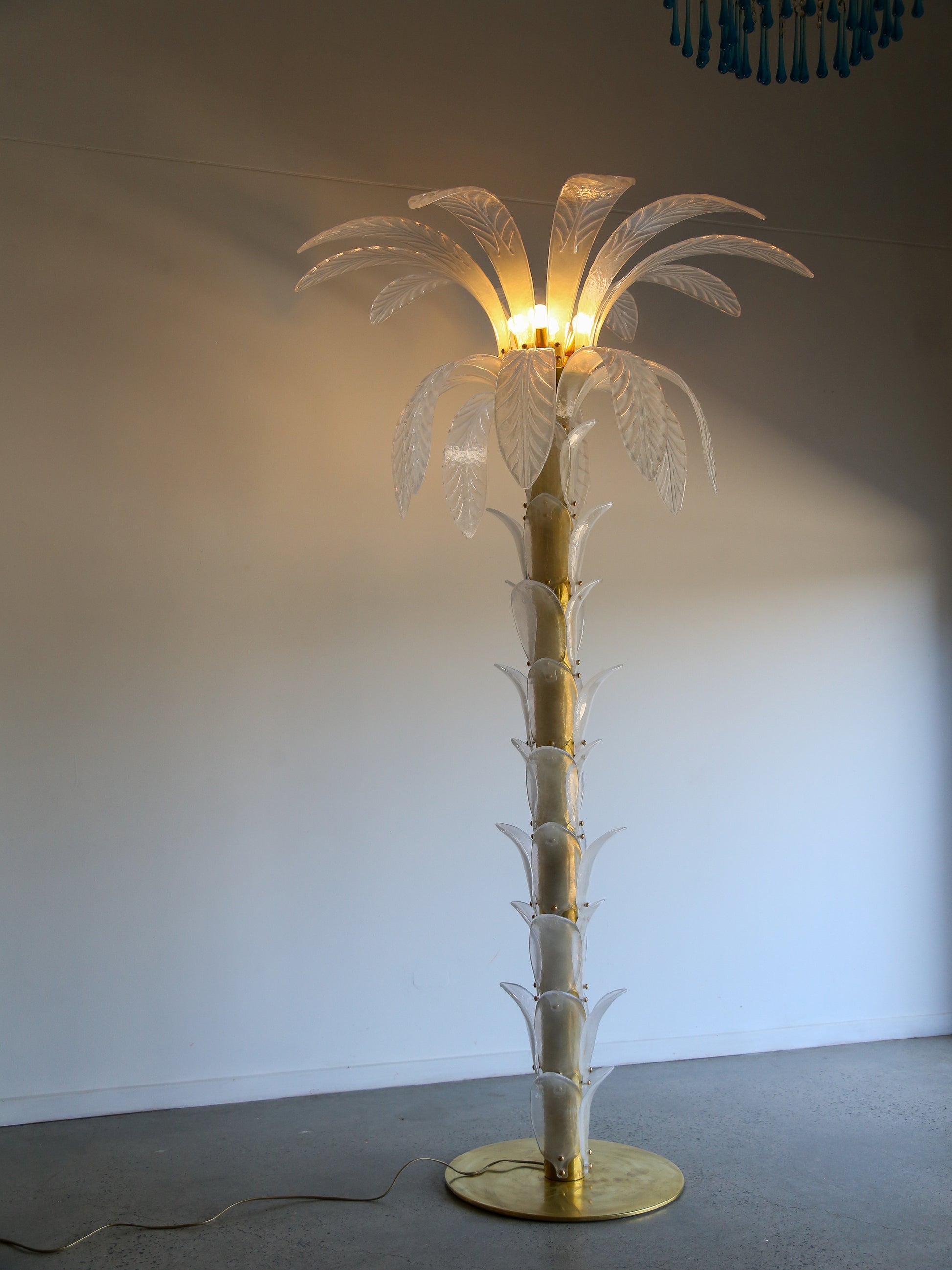 Murano Glass Palm Tree Floor Lamp with Brass Base, Contemporary