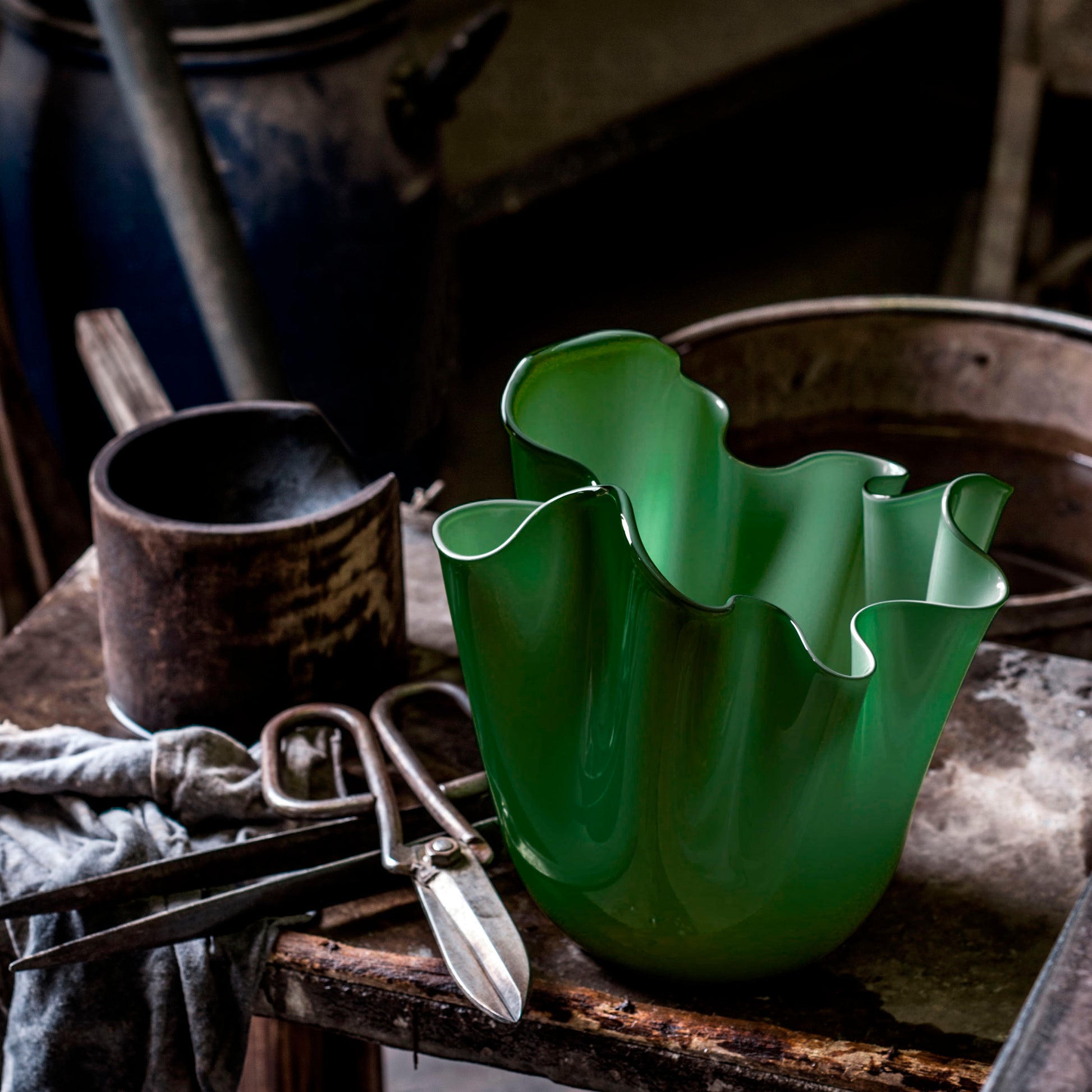 Fazzoletto ( handkerchief ) is one of the first works designed by Fulvio Bianconi for Venini and is created by a master glassmith with a soft, but firm, sweeping gesture.