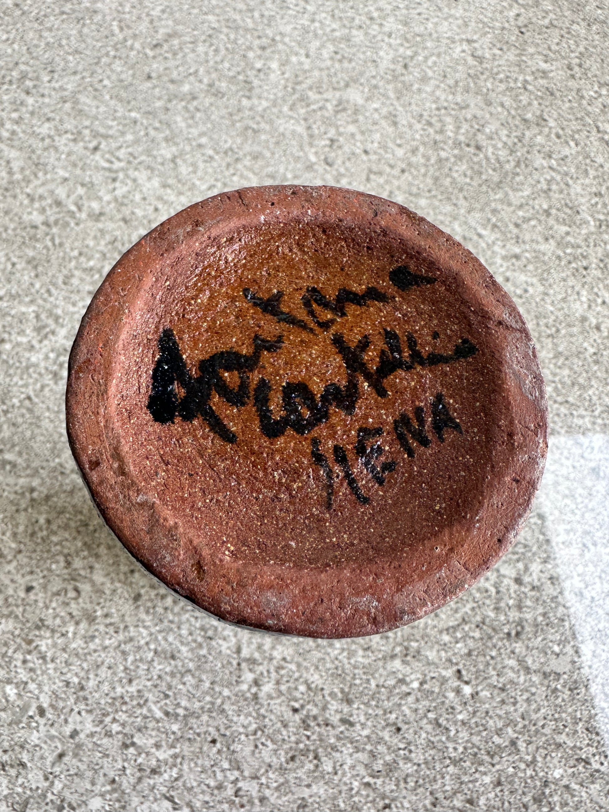 This mid-century handcrafted ceramic vase by Fontana Siena embodies the earthy warmth and artisanal beauty of Tuscan ceramic traditions. Featuring a natural brown glaze with black tonal bands, the piece highlights the region’s signature craftsmanship — refined, organic, and timeless.