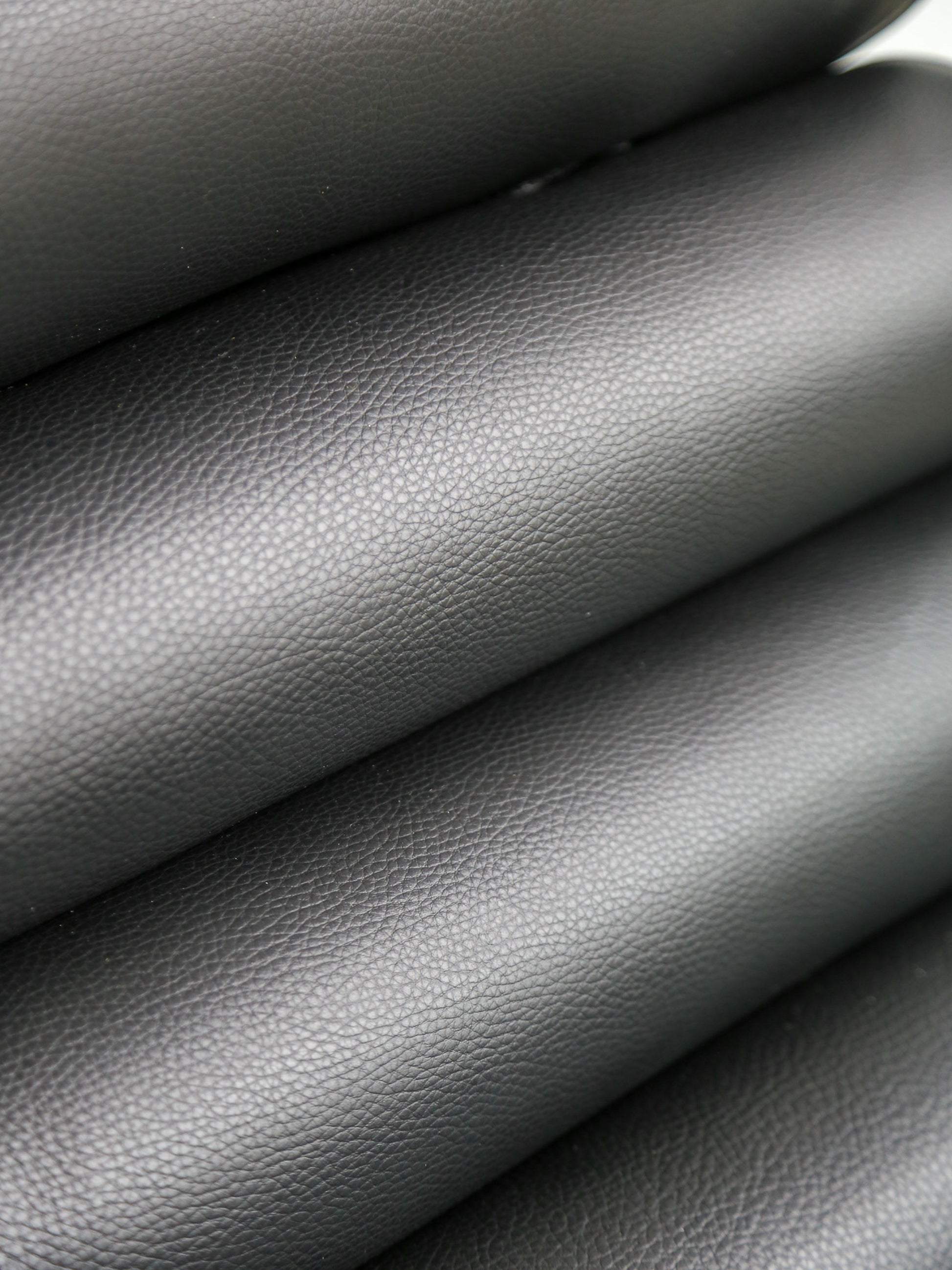 Materials & Techniques: Black leather rolls, thick tempered glass, metal fittings