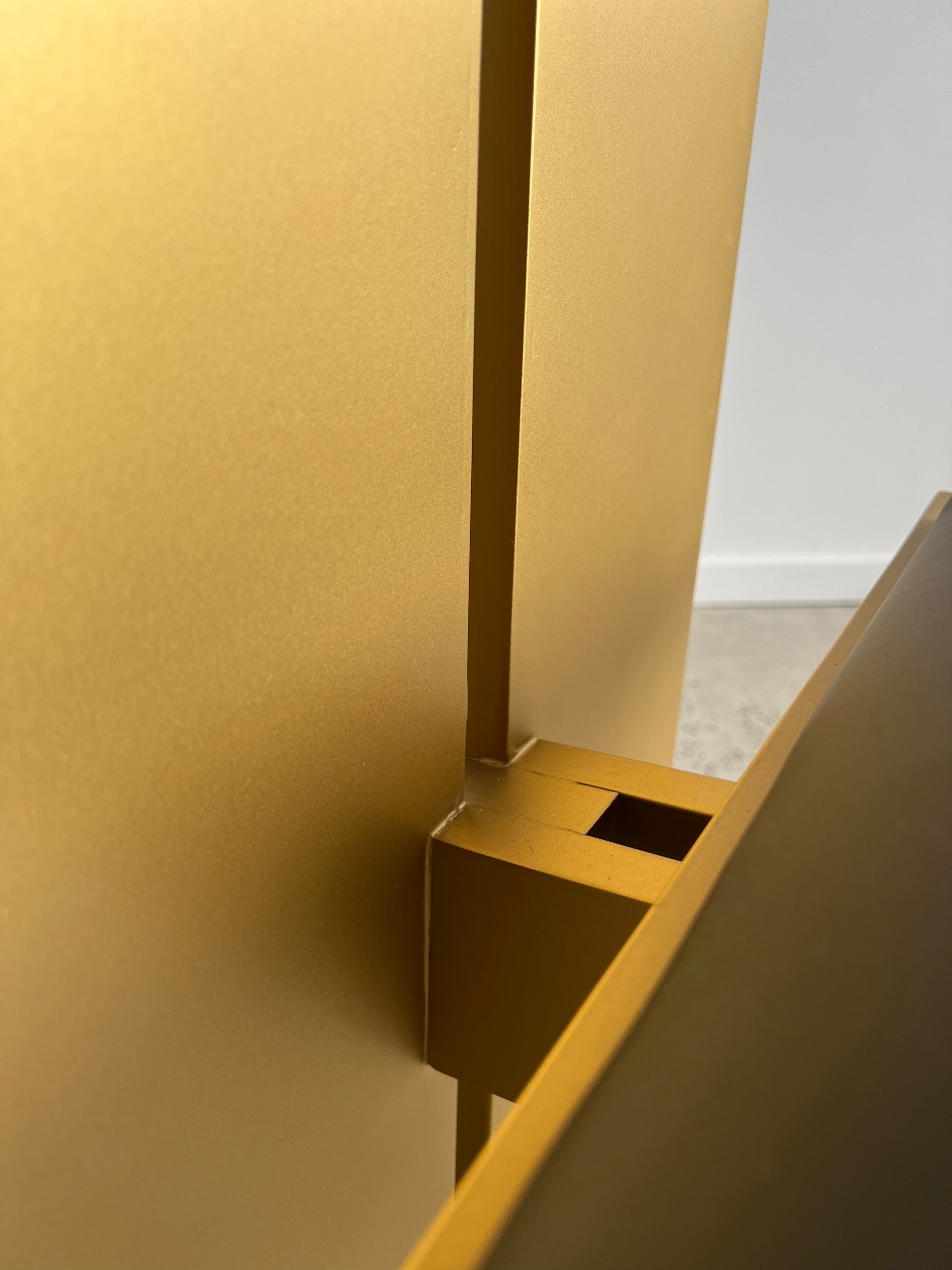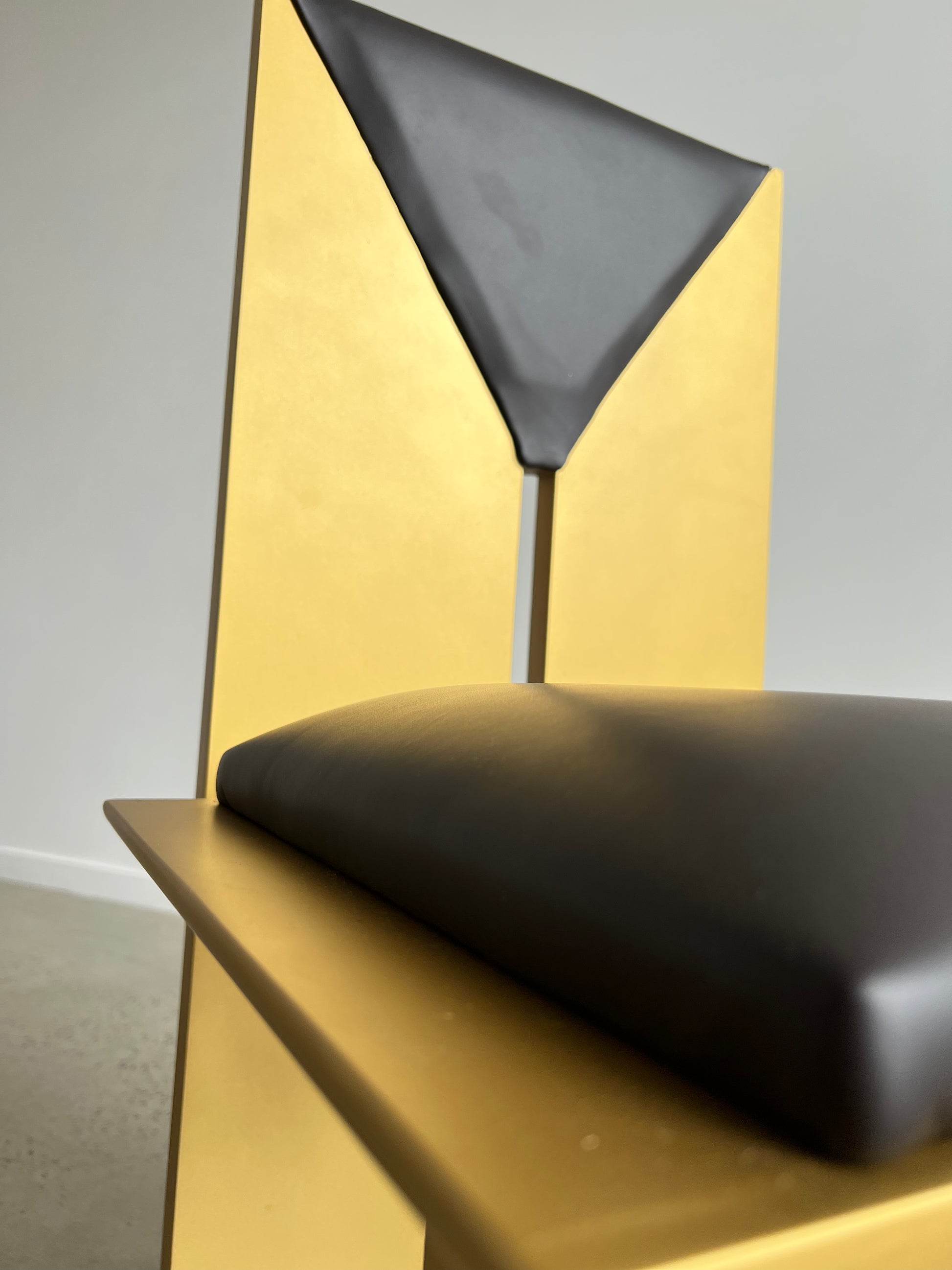 The chairs are in excellent condition, with both the leather and the gold paint appearing as if they were just made. The leather is supple and smooth, while the gold paint retains its shine and luster. The combination of the two materials creates a timeless look that is both modern and classic.